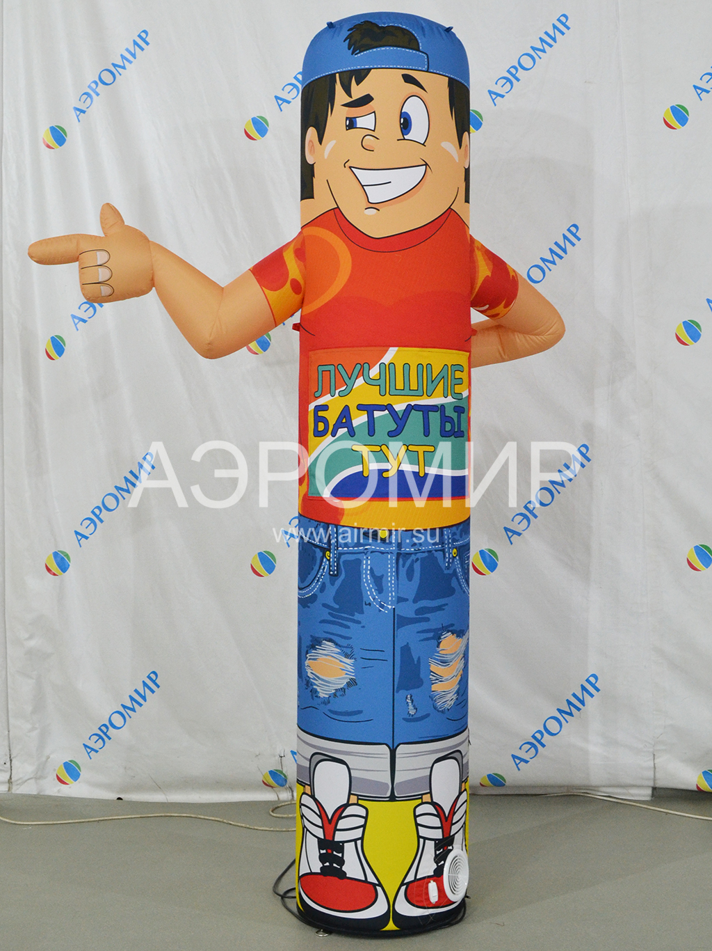 Рекламный указатель высотой 3 метра. Руки аэромена указывают направление Вашей торговой точки или бизнеса. На теле фигуры рекламные надписи, возможно брендирование. Встроенная подсветка делает фигуру заметной в любое время суток.