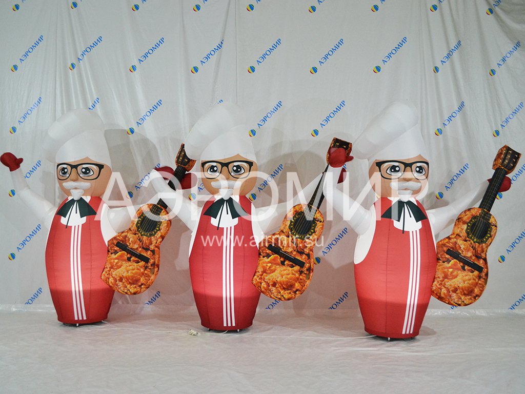 Установите напротив друг друга вентиляторы изделия, предварительно очистив площадку от мусора, колющих и режущих предметов. Выньте фигуру из чехла, разверните ее, держите аэромена в руках, чтобы не испачкать ткань.