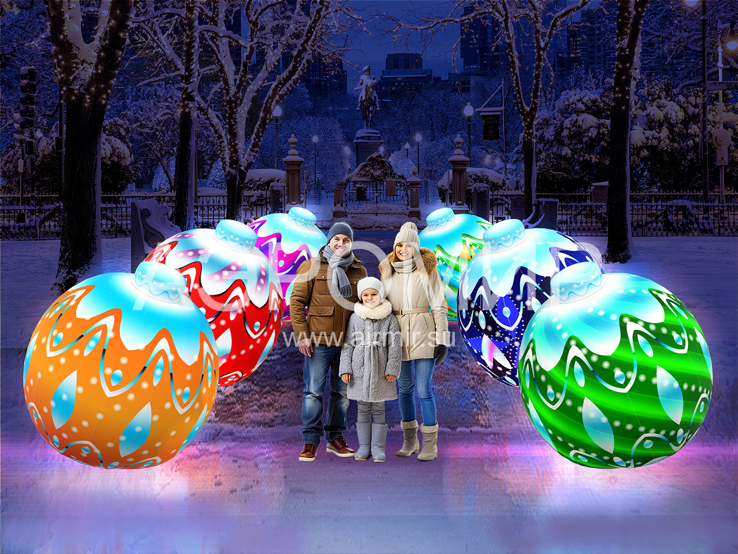 Красивые надувные большие шары с подсветкой для нового года. Украсят входную группу, сцену, фотозону, театральную постановку. Украшены полноцветной печатью.