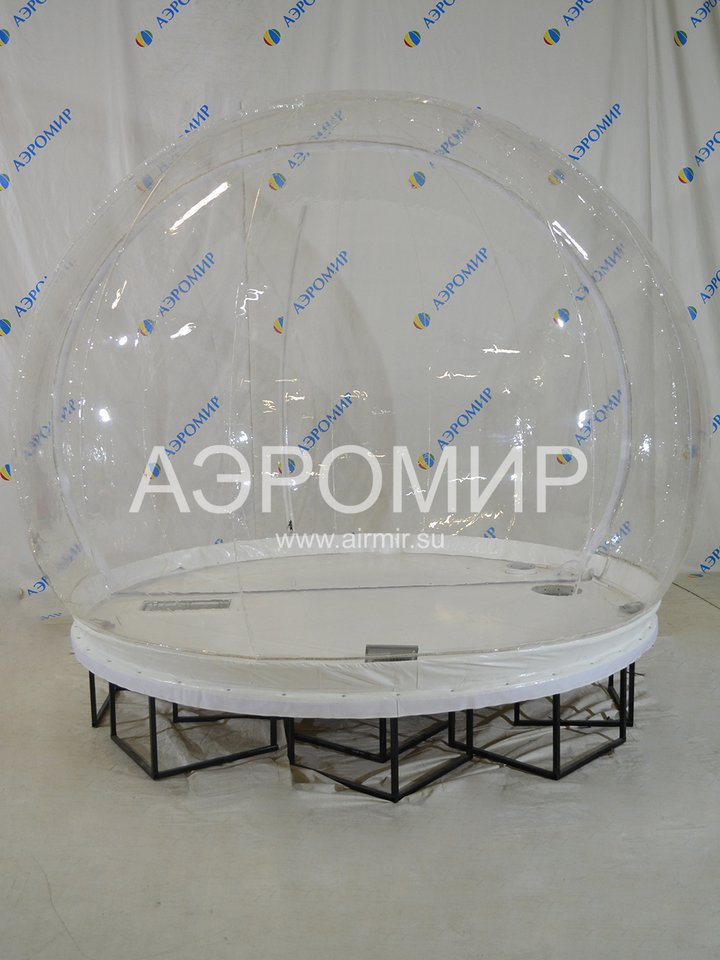 Материал Металлокаркас— металлическая несущая конструкция, состоящая из труб 20*20 мм, сварен под углом 90 градусов относительно друг друга. Столешница выполнена из влагостойкой фанеры толщиной 30 мм. Шар выполнен из материала ТПУ, который обладает прекрасной пластичностью. Это позволяет использовать прозрачную сферу при минусовой температуре до -30°C. Сфера при многократном сгибании (при сдувании и надувании оболочки) сохраняет прозрачный вид.