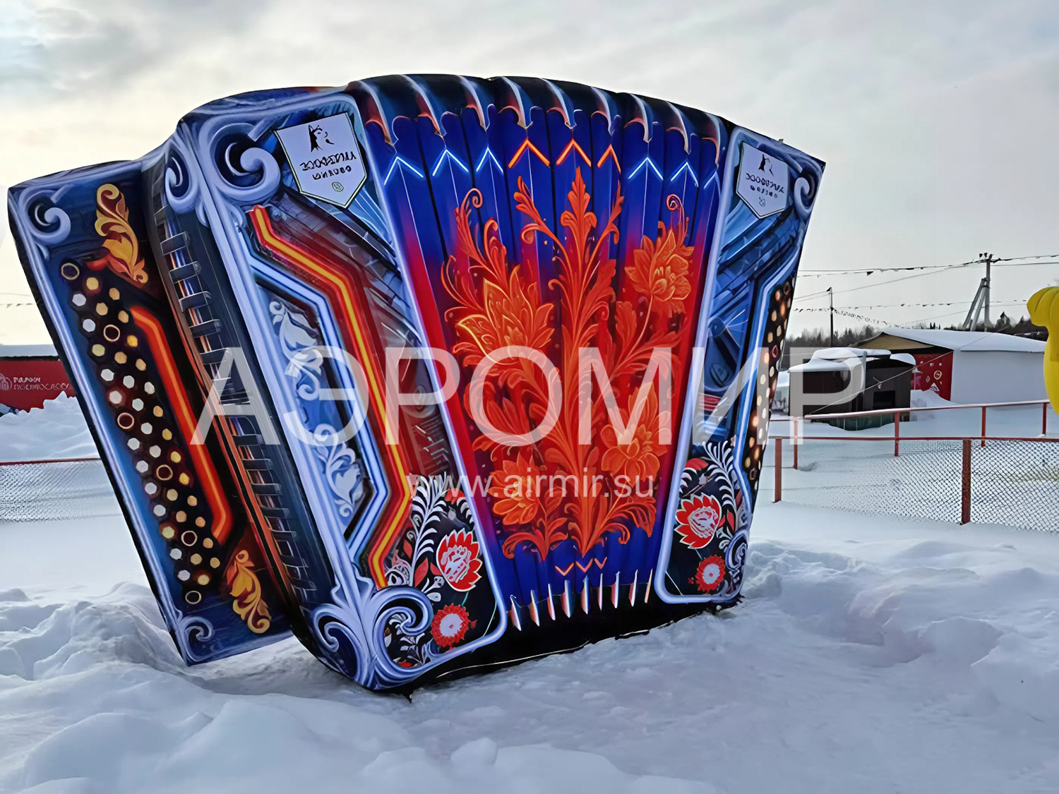 Сделайте ваше мероприятие по-настоящему запоминающимся! Внушительная надувная гармонь (3 м в высоту, 4.5 м в ширину) – это гарантия внимания и море позитива. Ее яркий образ мгновенно создаст атмосферу веселья и музыки, привлекая гостей всех возрастов.