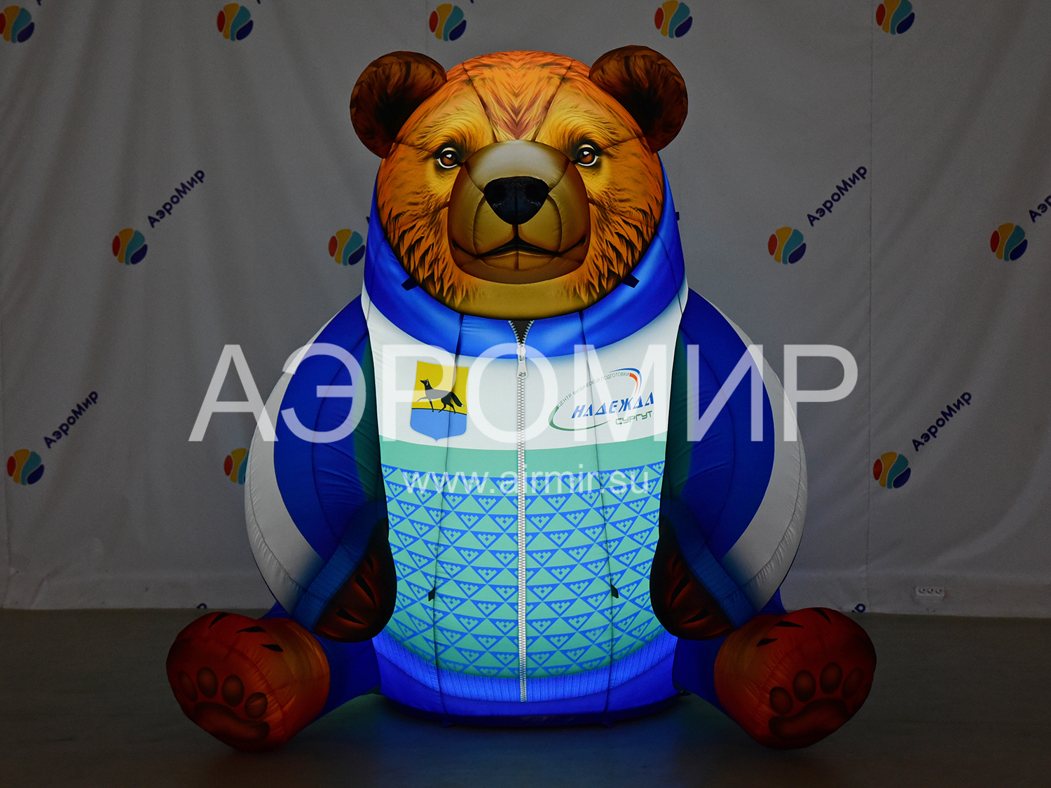 Надувной медведь в стилизованных доспехах – эффектная декорация с подсветкой для фотозон и мероприятий. Символизирует силу и русский дух. Возможна индивидуальная фотопечать.