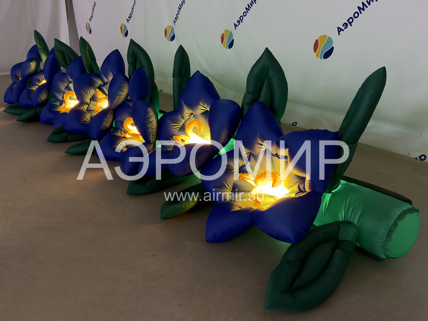 Надувные цветы «Колокольчик» - цветы насыщенного синего цвета с яркими желтыми тычинками. Именно такими мы постарались их сделать.