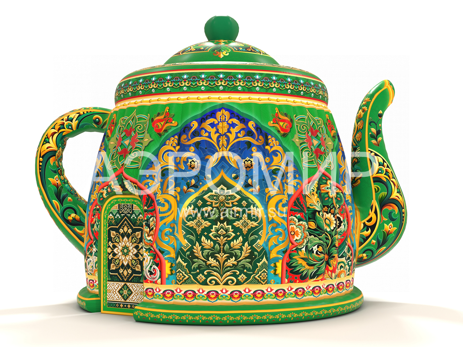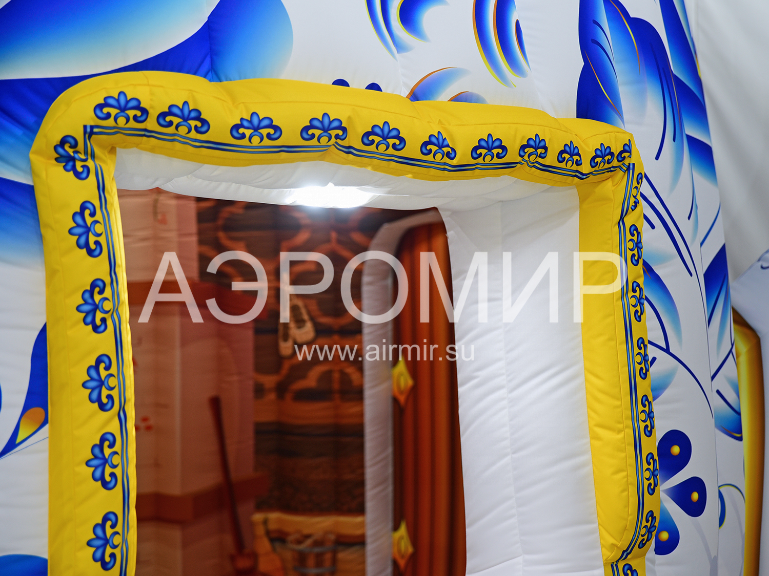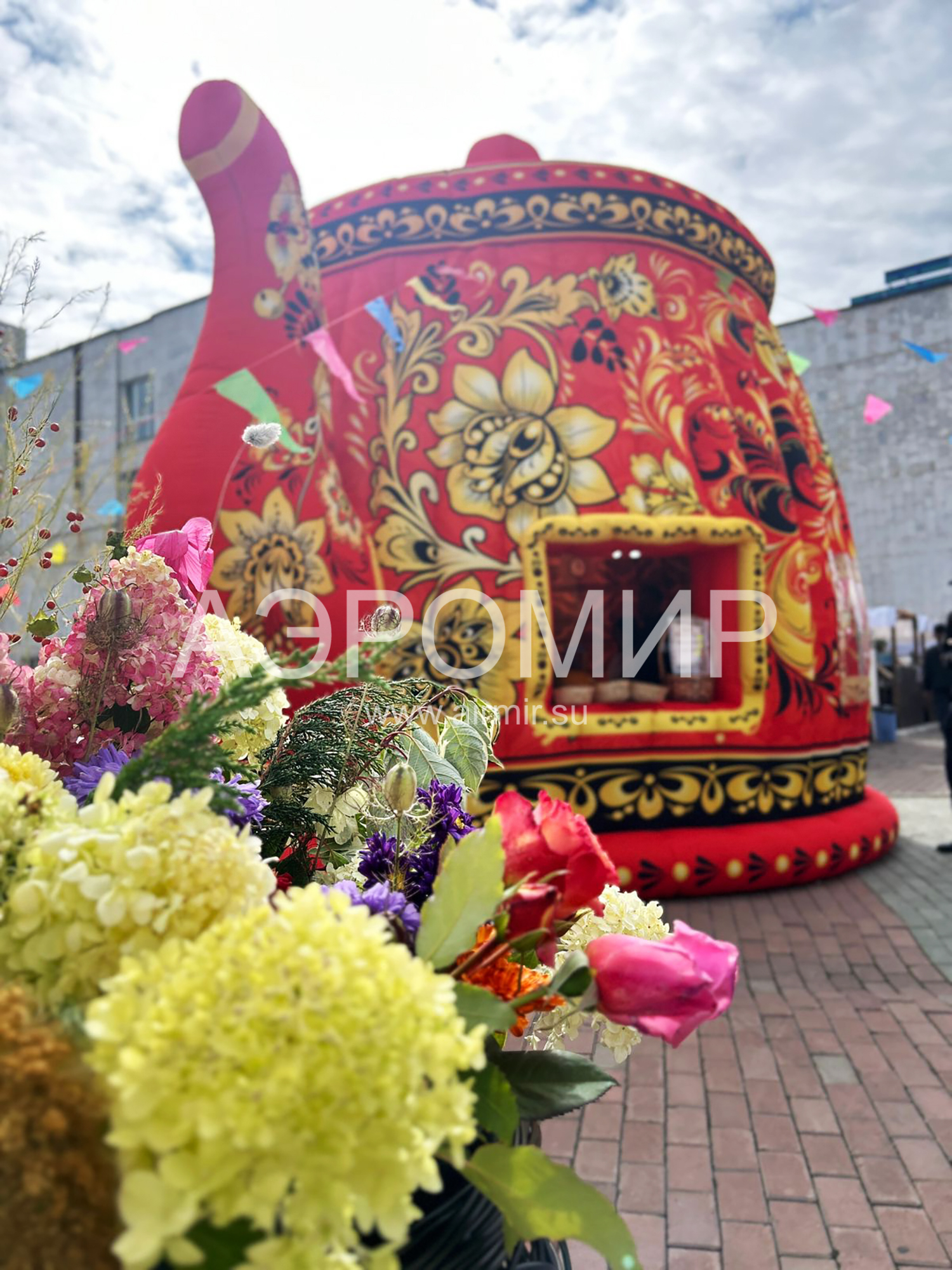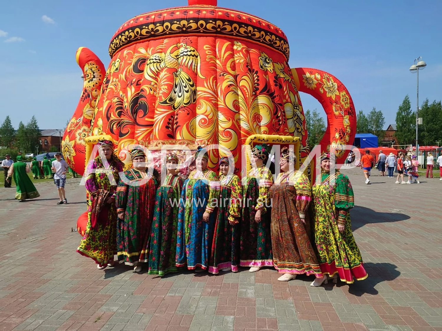 Огромный надувной дом в виде чайника, роспись традиционными русско-народными узорами. Снаружи и внутри фотопечать, есть несколько готовых вариантов росписи. Может использоваться как фотозона, место проведения мастер-классов, выставок, ярмарок. Гарантия 1 год, доставка в любую точку.