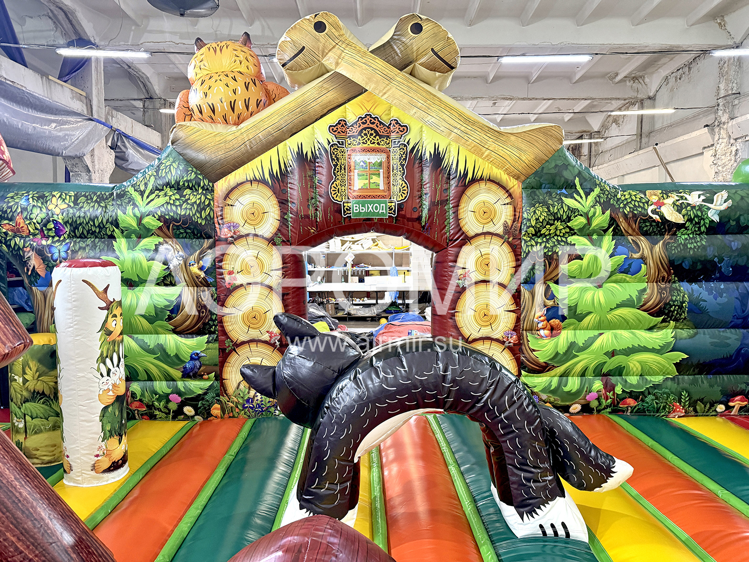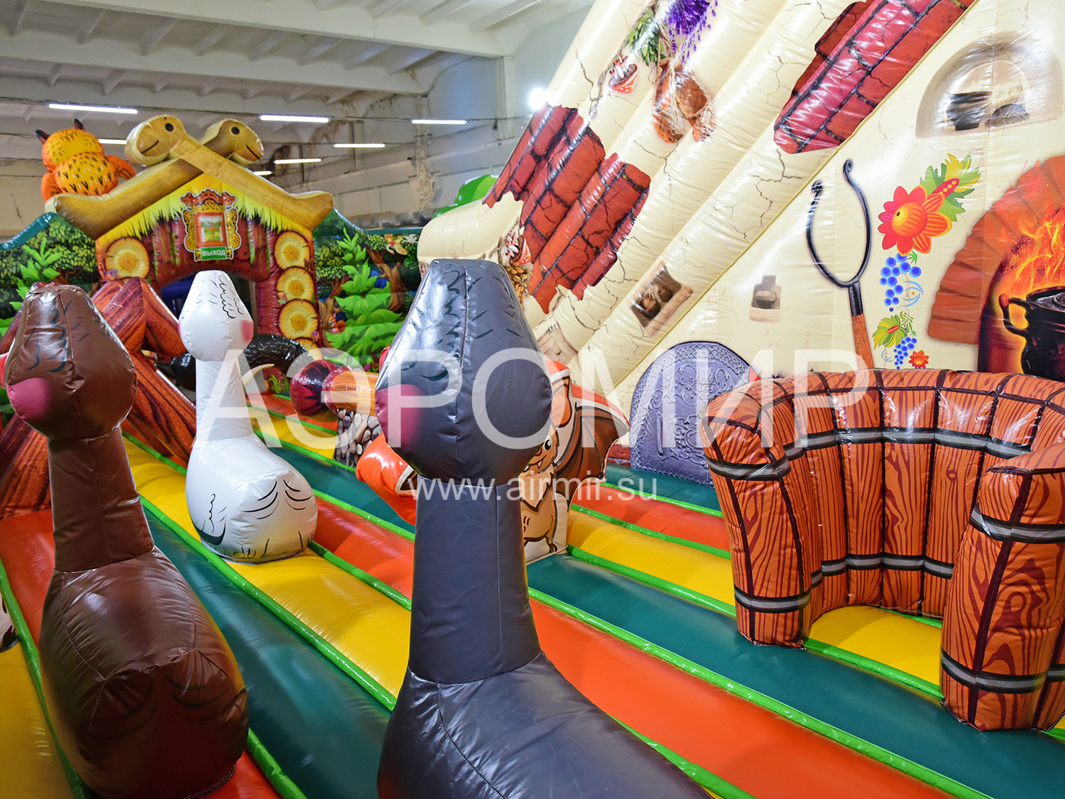 Кроме этого батут оснащен отличной большой горкой, высотой 4 метра и прыжковой зоной, тут каждый найдет себе занятие по душе. Весь аттракцион выдержан в народном стиле, его украшает полноцветная печать и надувные фигуры высокой степени детализации.