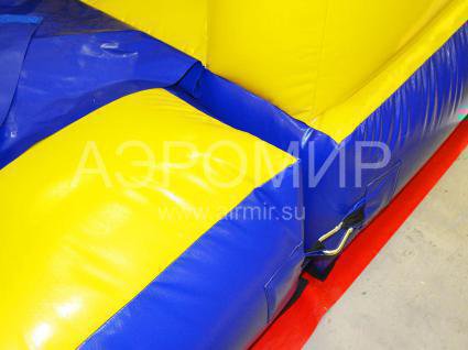 «Пляж» - это яркая надувная полоса препятствий, выполненная в сине-желтой цветовой гамме. Она состоит из двух модулей, один из которых - высокая надувная горка, а другой - непосредственно комплекс препятствий. Такое конструкторское решение фактически делает из одного изделия два и упрощает установку.