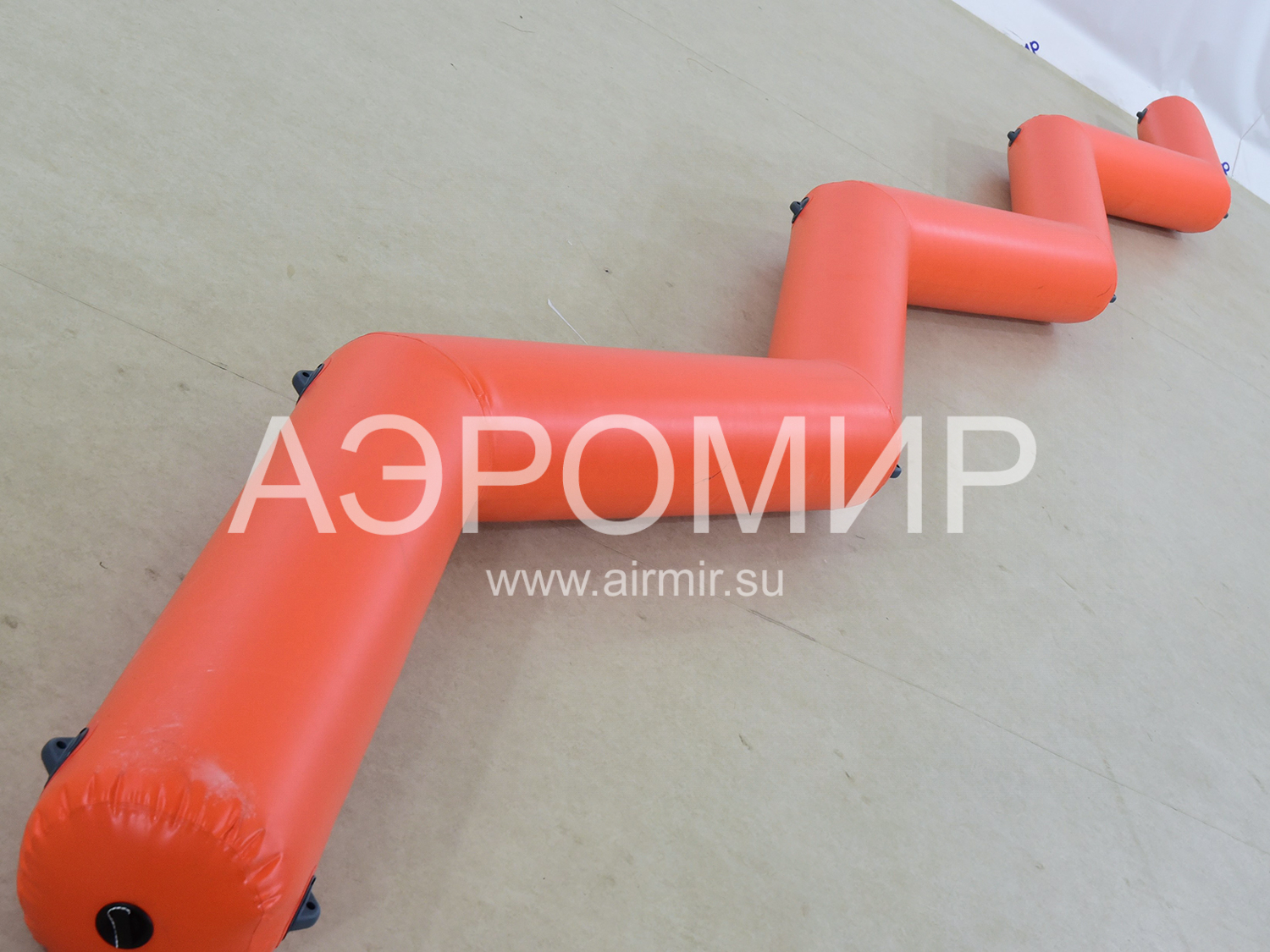 Необходимо двигаясь по надувному зигзагу, достичь его конца не упав и за минимальное время.