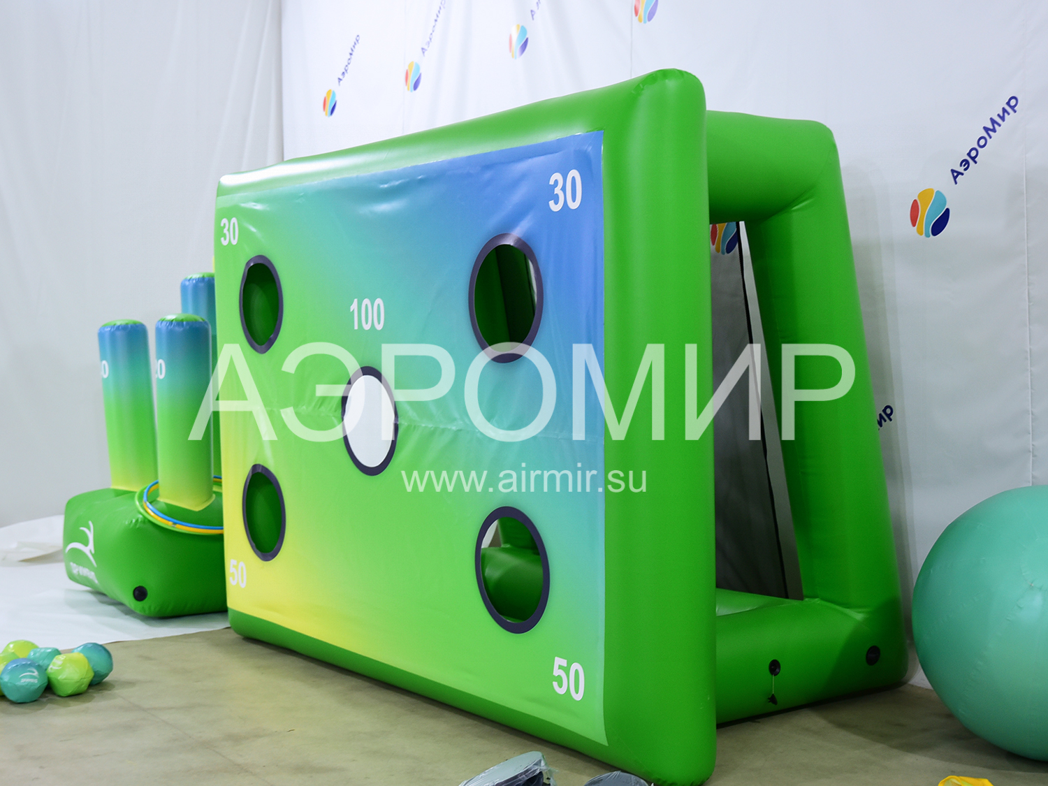 «Надувные ворота» сочетают в себе функционал командного аттракциона и спортивного оборудования. Ведь с их помощью можно одновременно вырабатывать командный дух и ловкость, меткость. Хотя, и для соревнований в личном зачете они тоже подойдут.