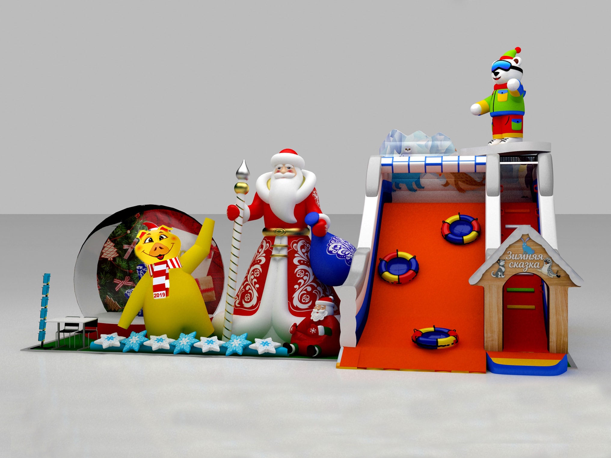 Непременно подскажут, как украсить площадку на Новый Год. Вас будут ждать: изящный надувной Дед Мороз, сказочная фотозона Чудо-шар, чудесный кресло-мешок Дед Мороз «обнимашка».