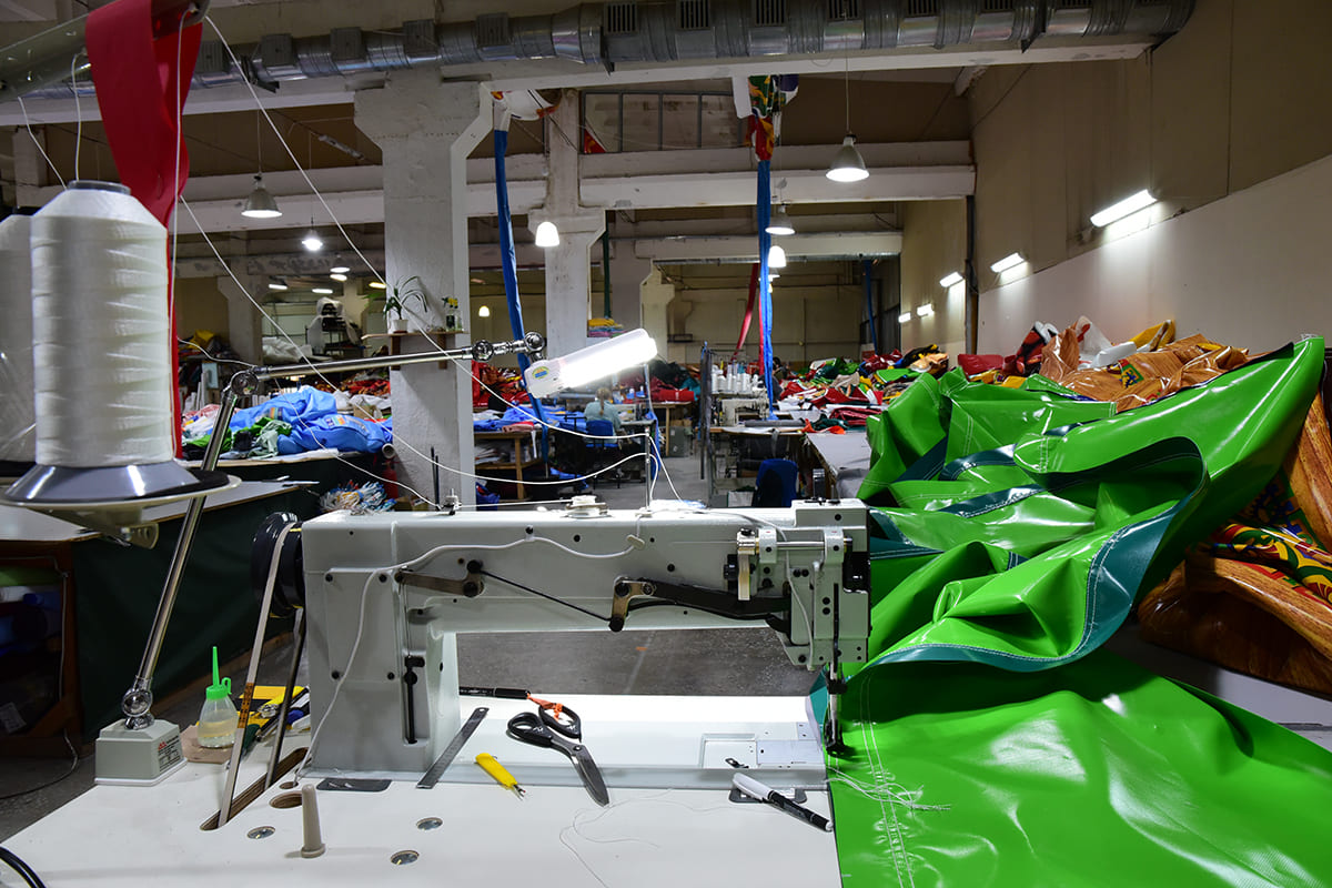 «АЭРОМИР» - это производственное предприятие. Для нормального функционирования такой компании жизненно необходимы умелые руки мастеров. И они у нас есть. Над созданием надувных конструкций и аттракционов трудятся высококвалифицированные конструкторы, технологи, швеи. Делать свою работу быстро и качественно им помогает современное оборудование: промышленные швейные машины, профессиональные раскройные ножи, станки и специальные фены для сварки ПВХ.